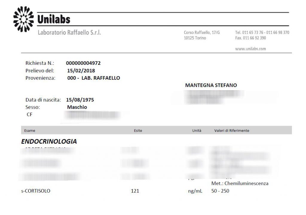 Risultato? Cortisolo = 121, valore medio nell’intervallo accettato, che per il ritmo di impegni che mi impongo è davvero strabiliante.
